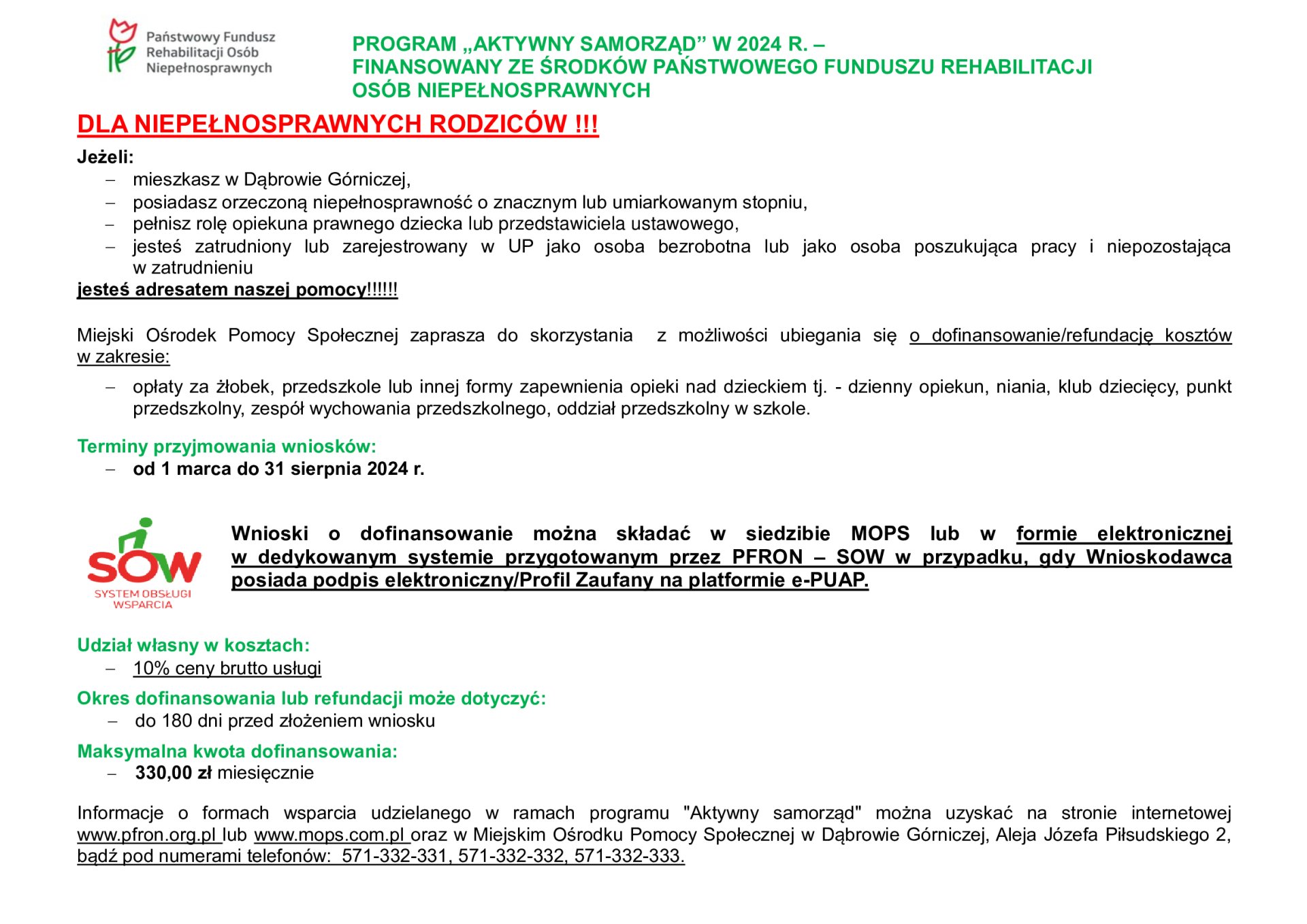 Aktywny Samorząd 2024 - dofinansowanie/refundację kosztów w zakresie opłaty za żłobek, przedszkole lub innej formy zapewnienia opieki nad dzieckiem