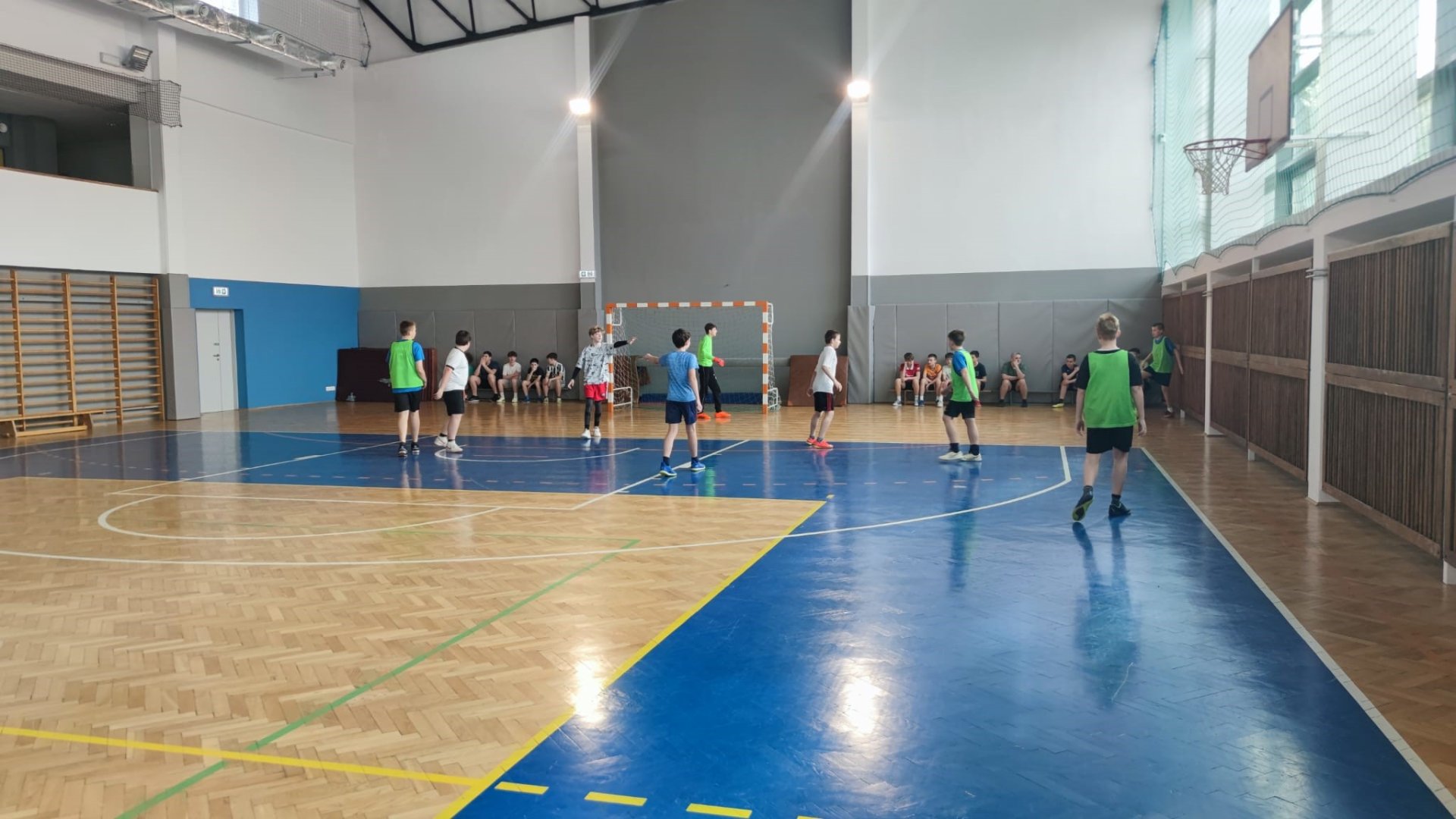 Wracamy powoli do organizacji turniejów szkolnych na dużej sali gimnastycznej, wcześniej nie było to możliwe z powodu remontu. „Halowy turniej piłki nożnej” dla chłopców i dziewcząt starszych odbył się w pierwszym tygodniu kwietnia, obejmując klasy 6–8. Zawody zorganizowali mgr Dariusz Kita i mgr Przemysław Wołczyk. W turnieju wystartowało 5 reprezentacji klas, składających się głównie z chłopców, ale było też kilka dziewczyn. Drużyny były 6 osobowe z 1 rezerwowym, a mecze trwały po 10 minut. Zawody rozegrano systemem „każdy z każdym”, czyli każda drużyna rozegrała cztery mecze. Kolejność miejsc wyznaczała ilość zebranych punktów wg punktacji: wygrana 3 punkty, remis 1 punkt.