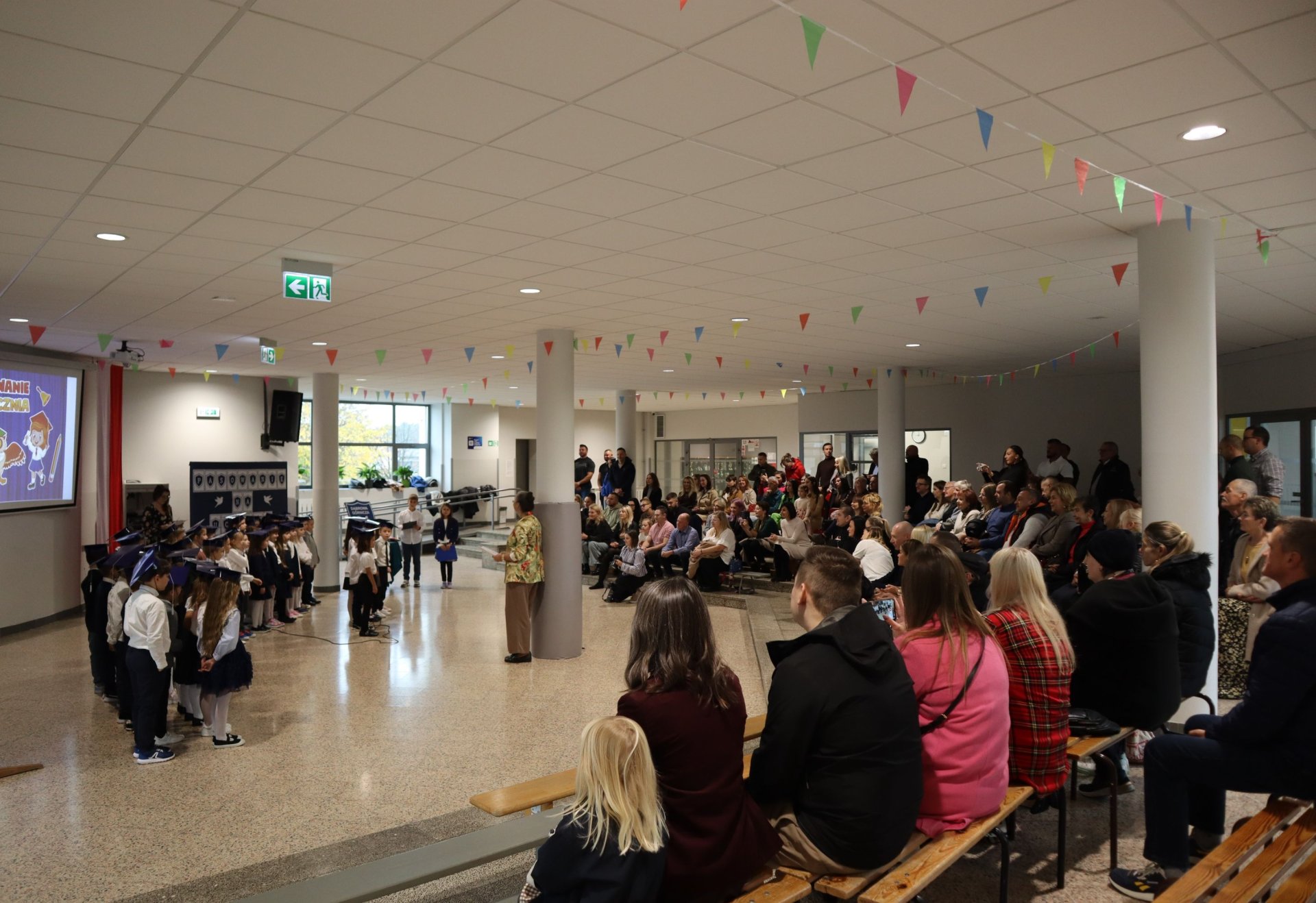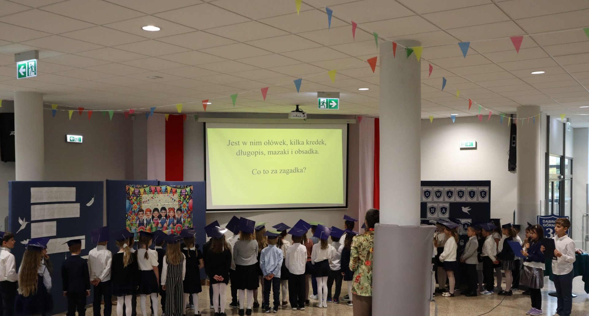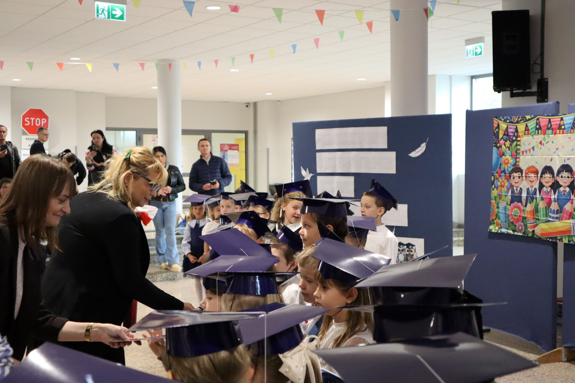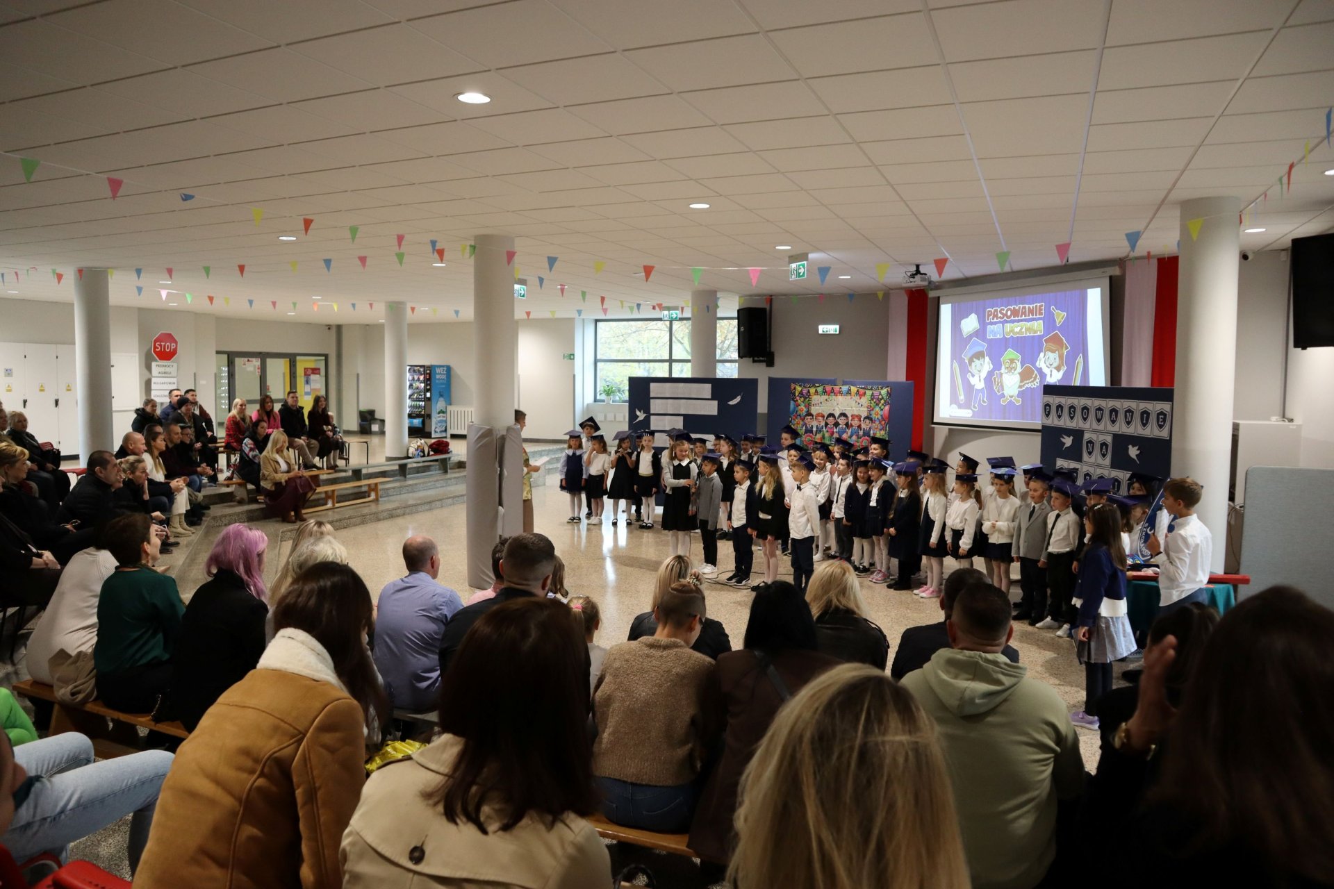 Dnia 21.10.2025 roku w naszej szkole odbyło się uroczyste pasowanie na ucznia klas pierwszych. Wydarzenie rozpoczęło się od odśpiewania hymnu narodowego, po którym najmłodsi uczniowie zaprezentowali przygotowany z wielkim zaangażowaniem program artystyczny pod kierunkiem swoich wychowawców i nauczycieli edukacji wczesnoszkolnej Pani Marty Trzebińskiej – klasa Ia oraz Pani Anny Ryś – klasa Ib. Najważniejszym momentem spotkania było pasowanie na ucznia, którego dokonały Pani Dyrektor zespołu dr Elżbieta Pełka oraz Pani Wicedyrektor mgr Małgorzata Brożek. Wśród gości nie zabrakło rodziców i bliskich, którzy z uśmiechem i wzruszeniem obserwowali swoje pociechy w tej wyjątkowej chwili. Po oficjalnej części uroczystości przyszedł czas na wspólne zdjęcia i słodki poczęstunek.