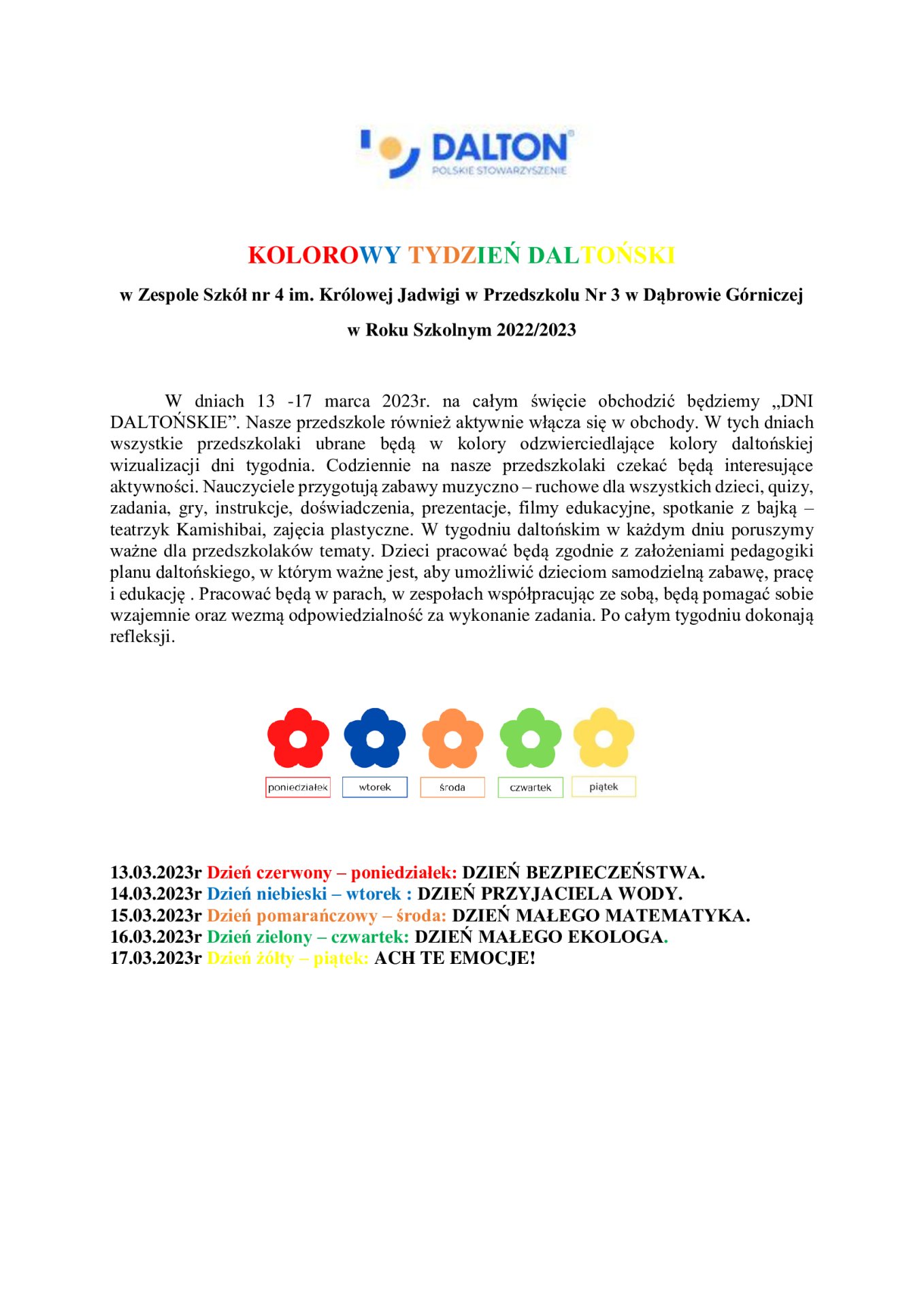 KOLOROWY TYDZIEŃ DALTOŃSKI