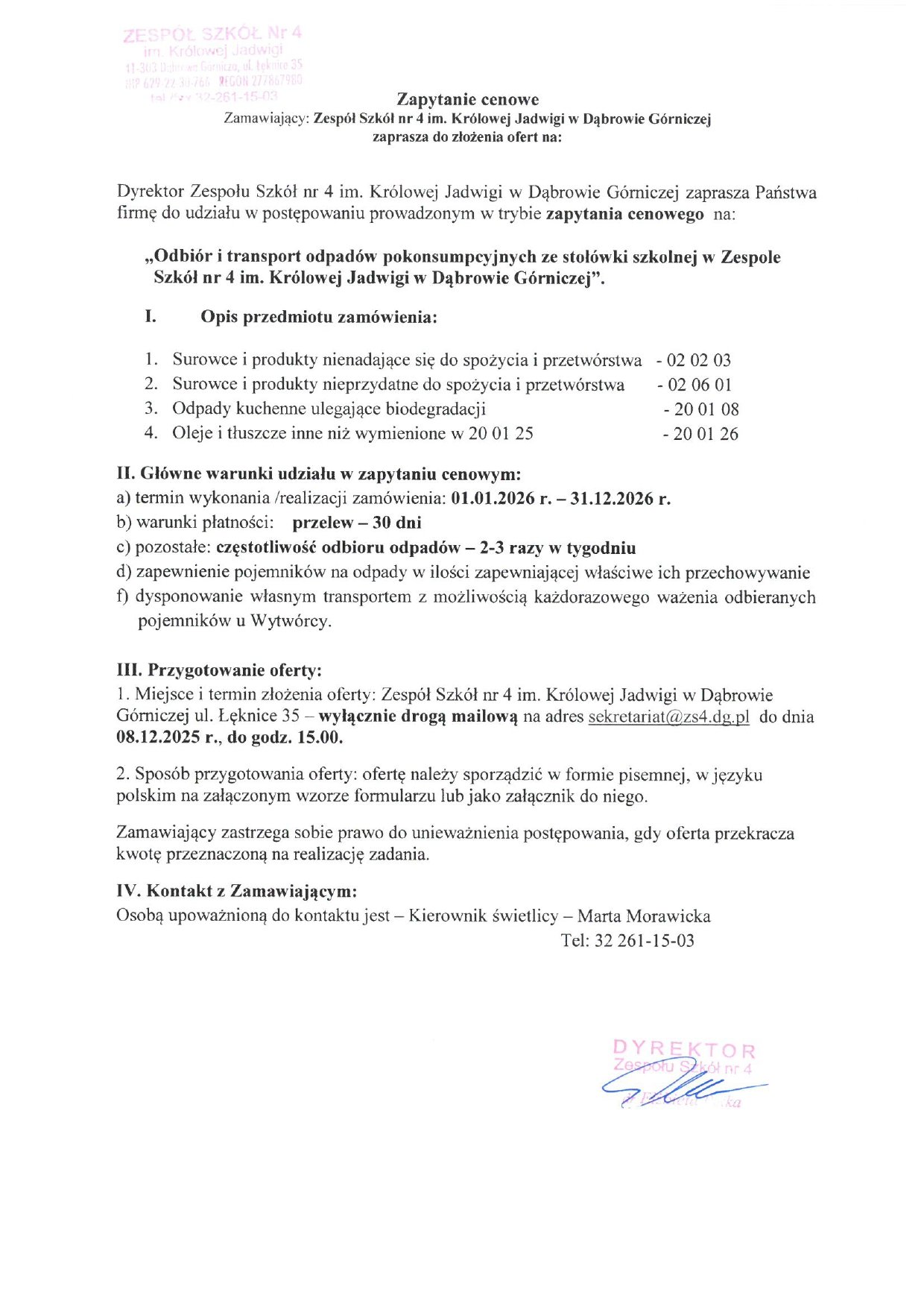 Pobierz Zapytanie_cenowe_-_odbior_odpadow_pokonsumpcyjnych Zapytanie_cenowe_-_odbior_odpadow_pokonsumpcyjnych Data publikacji: 2025-12-02 10:05:29, Rozmiar pliku: 937.05Kb