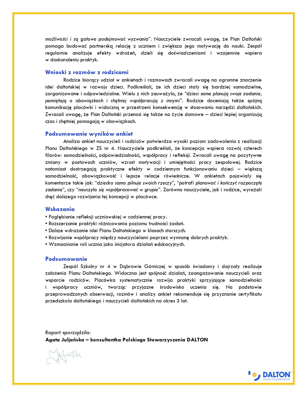 Raport z audytu placówki